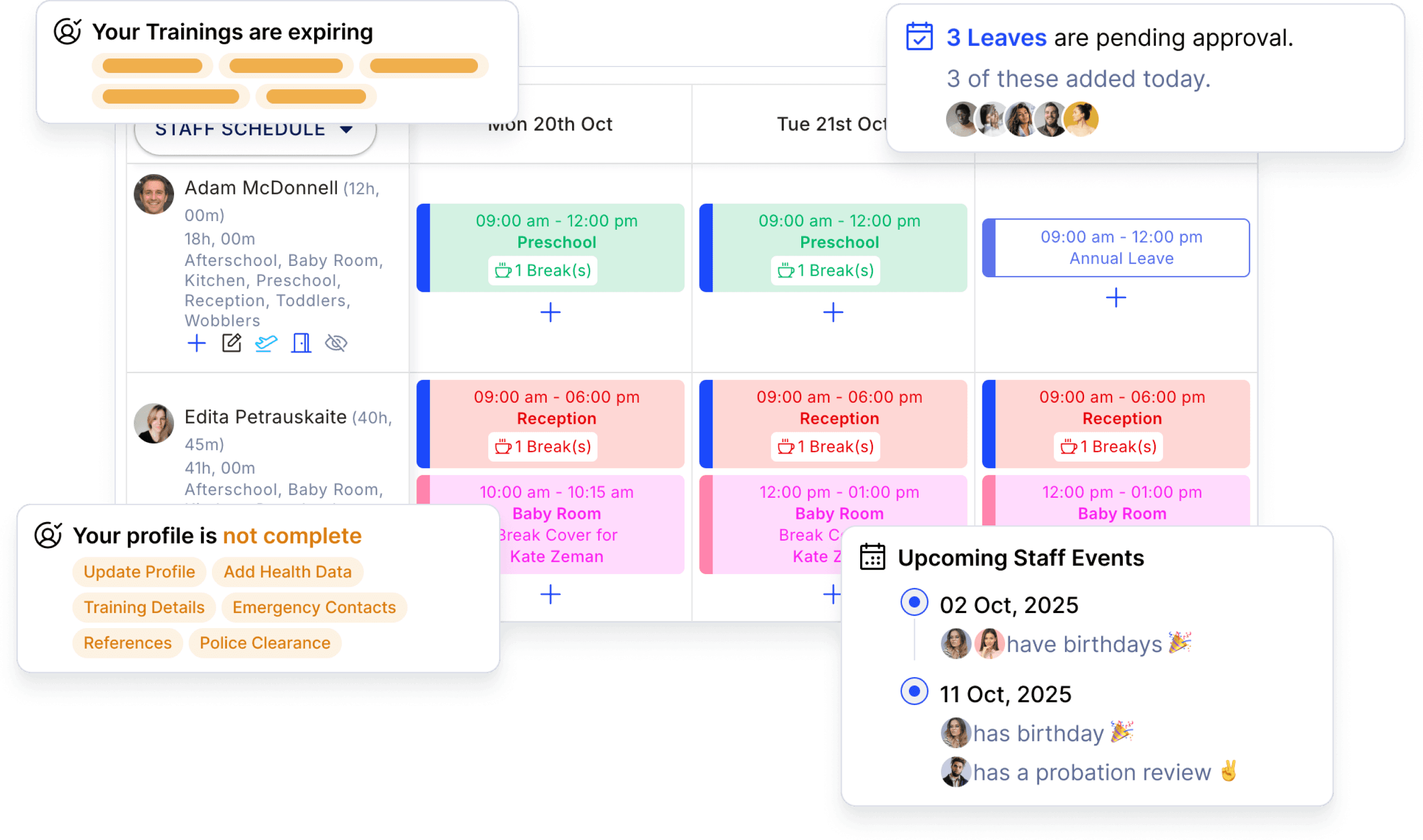Manage staff roster and attendance