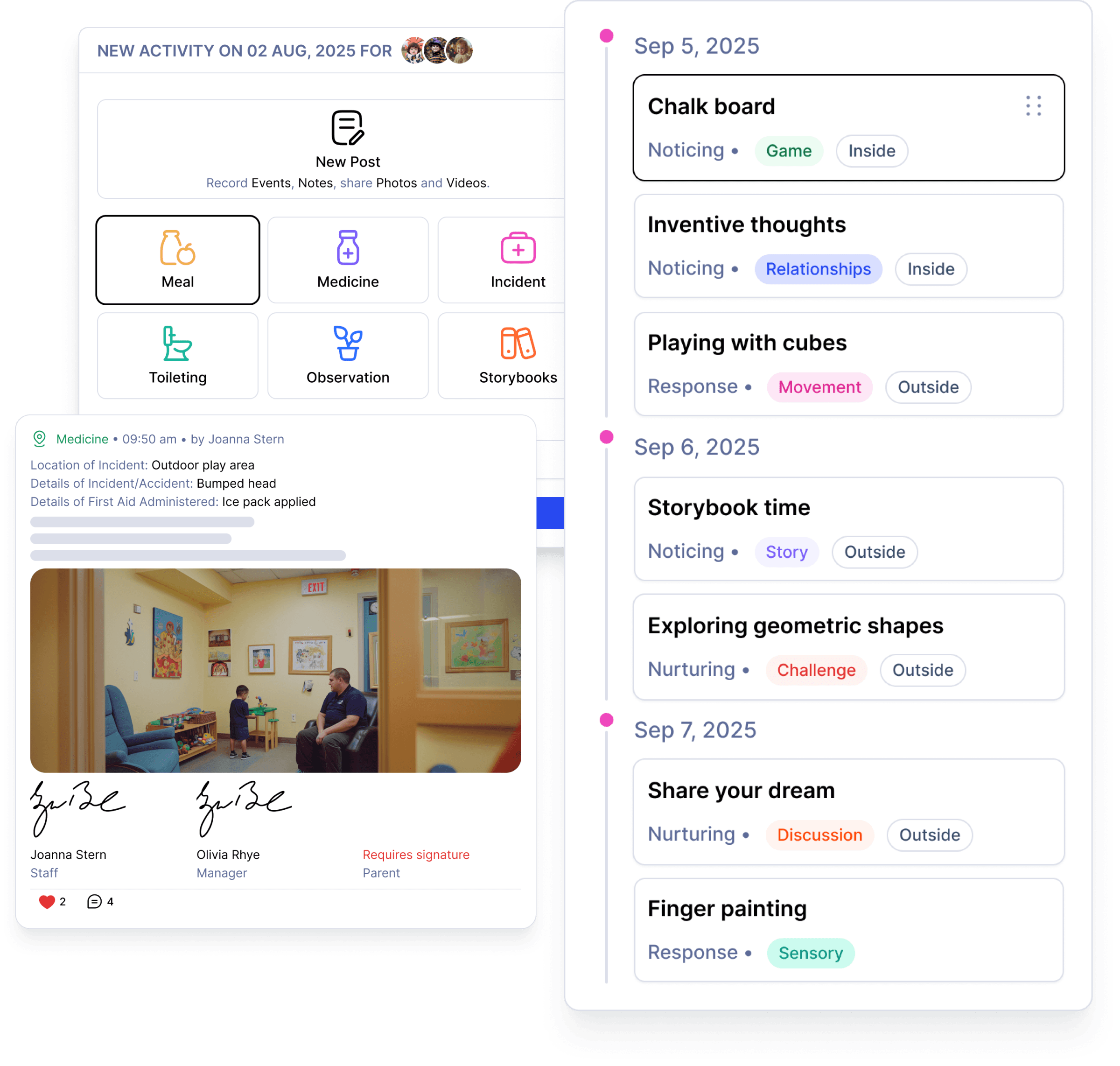 Parents can track their child's activities, from sleep to meals